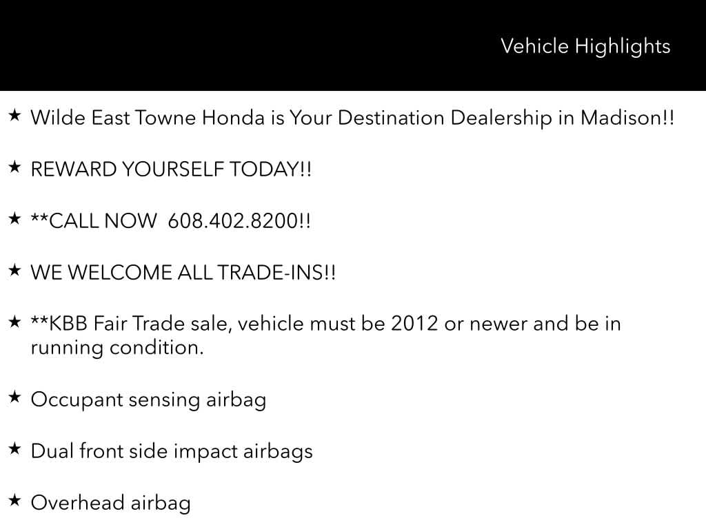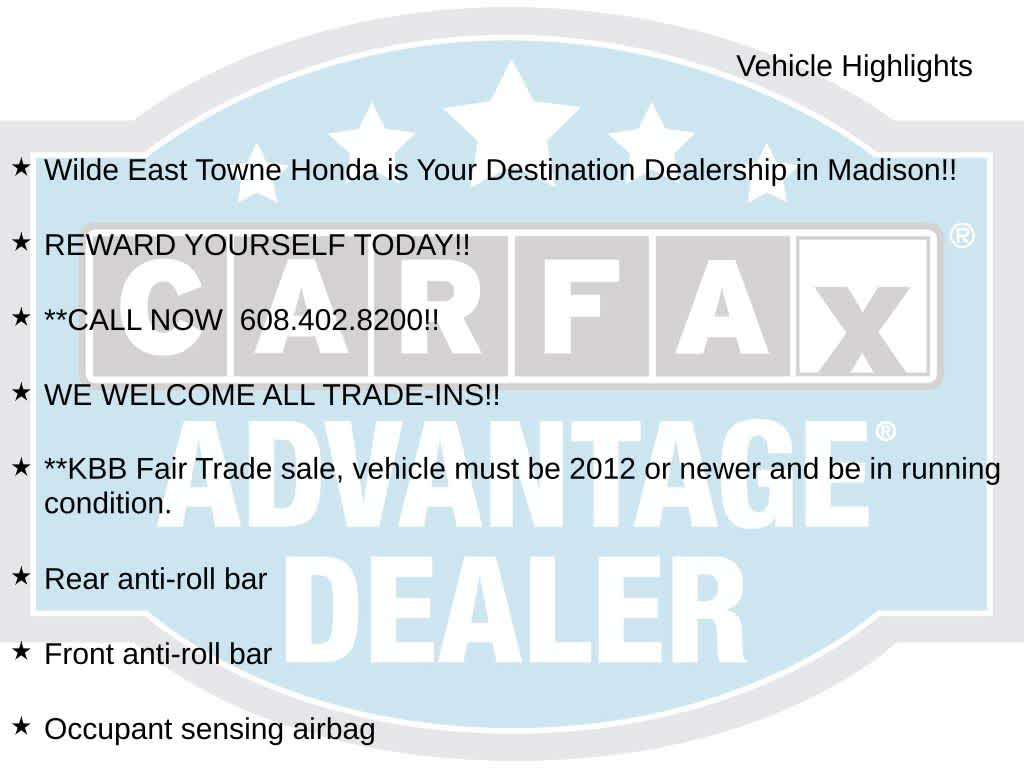 - Honda Care Roadside Assistance for 1 year/12,000 miles