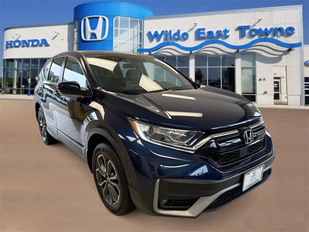 Wilde East Towne Honda is Your Destination Dealership in Madison!!, **Honda Presidents Award, Dealer Rater Dealership of the Year, CarFax Dealer of the Year and more!, This Honda CR-V has many features, including;, Back-Up Camera!, **Apple CarPlay!!, *Android Auto!!, USB/AUX Input!, *Bluetooth!, Sunroof/Moonroof!, *Power Drivers Seat!, Heated Seats!, Push Button Start!!, Remote Start!!, Blind Spot Monitoring!, Lane Departure Warning!!, Auto High Beams!!, Dynamic Radar Cruise Control!!, Pre-Collision System!!, **AWD!, **Honda Reliability!, **LOCAL TRADE-IN!, 1-OWNER No Accident Carfax!, **Clean Carfax!, EX Package!, **Great Gas Mileage!, AMAZING!!, **Low Miles!!, Lot Of Extras!! Must See!!, **PROUDLY DISPLAYED AT WILDE EAST TOWNE HONDA!, SEE IT FIRST BEFORE ANYONE ELSE!!, REWARD YOURSELF TODAY!!, **CALL NOW 608.402.8200!!, WE WELCOME ALL TRADE-INS!!, *See store for details on Lifetime oil plan. Must present at time of sale. Not all vehicles qualify, **$998 Wilde Care Including 3 oil changes on all new & pre owned vehicles., **KBB Fair Trade sale, vehicle must be 2010 or newer and be in running condition., Besides many of the features just listed, this Honda CR-V also may have many of the following;, HondaTrue Certified Certified, AWD, 18 Alloy Wheels, 4-Wheel Disc Brakes, 5.64 Axle Ratio, 6 Speakers, ABS brakes, Adaptive Cruise Control: Adaptive Cruise Control (ACC) with Low-Speed Follow, Air Conditioning, Alloy wheels, AM/FM radio: SiriusXM, Apple CarPlay/Android Auto, Auto High-beam Headlights, Automatic temperature control, Blind Spot Information (BSI) System warning, Brake assist, Bumpers: body-color, Cloth Seat Trim, Compass, Delay-off headlights, Driver door bin, Driver vanity mirror, Dual front impact airbags, Dual front side impact airbags, Electronic Stability Control, Exterior Parking Camera Rear, Forward collision: Collision Mitigation Braking System (CMBS) + FCW mitigation, Four wheel independent suspension, Front anti-roll bar, Front Bucket Seats, Front Center Armrest, Front dual zone A/C, Front fog lights, Front reading lights, Heated door mirrors, Heated Front Bucket Seats, Heated front seats, Illuminated entry, Low tire pressure warning, Occupant sensing airbag, Outside temperature display, Overhead airbag, Overhead console, Panic alarm, Passenger door bin, Passenger vanity mirror, Power door mirrors, Power driver seat, Power moonroof, Power steering, Power windows, Radio data system, Radio: 180-Watt AM/FM/HD/SiriusXM Audio System, Rear anti-roll bar, Rear seat center armrest, Rear window defroster, Rear window wiper, Remote keyless entry, Security system, Speed control, Speed-sensing steering, Speed-Sensitive Wipers, Split folding rear seat, Spoiler, Steering wheel mounted audio controls, Tachometer, Telescoping steering wheel, Tilt steering wheel, Traction control, Trip computer, Turn signal indicator mirrors, Variably intermittent wipers, AWD.