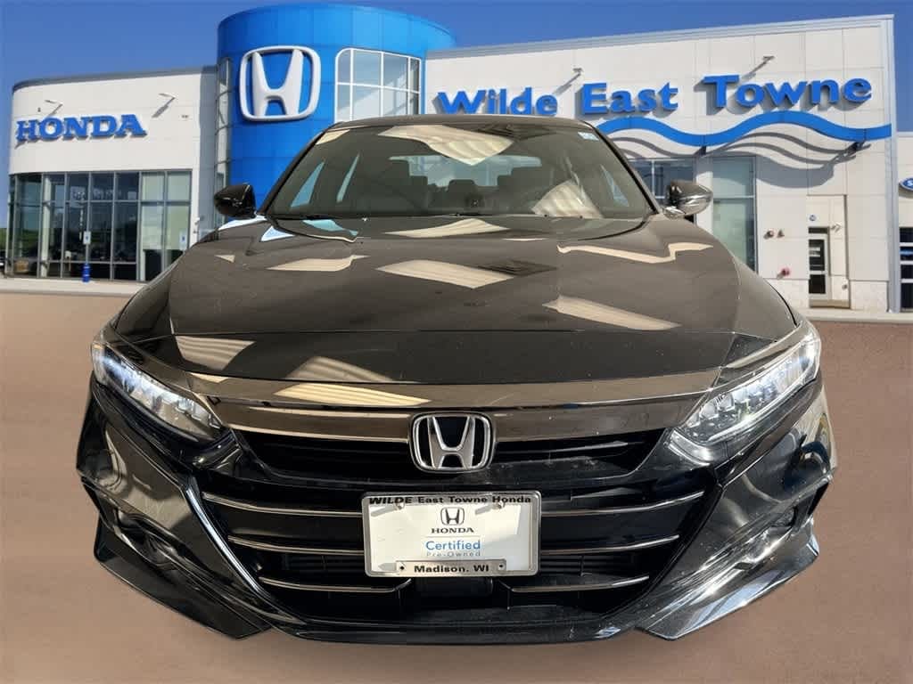 Wilde East Towne Honda is Your Destination Dealership in Madison!!, **Honda Presidents Award, Dealer Rater Dealership of the Year, CarFax Dealer of the Year and more!, This Honda Accord has many features, including;, Back-Up Camera!, **Apple CarPlay!!, *Android Auto!!, USB/AUX Input!, *Bluetooth!, *Power Drivers Seat!, Push Button Start!!, Lane Departure Warning!!, Auto High Beams!!, Dynamic Radar Cruise Control!!, Pre-Collision System!!, Honda 182-Point Inspecition!!, **Honda Reliability!, **LOCAL TRADE-IN!, Sport Package!!, **Great Gas Mileage!, AMAZING!!, **Low Miles!!, **Newly Acquired!!, LET US WORK FOR YOU!!, CHECK IT OUT TODAY!!, Lot Of Extras!! Must See!!, REWARD YOURSELF TODAY!!, **CALL NOW 608.402.8200!!, WE WELCOME ALL TRADE-INS!!, *See store for details on Lifetime oil plan. Must present at time of sale. Not all vehicles qualify, **$998 Wilde Care Including 3 oil changes on all new & pre owned vehicles., **KBB Fair Trade sale, vehicle must be 2010 or newer and be in running condition., Besides many of the features just listed, this Honda Accord also may have many of the following;, HondaTrue Certified Certified, Black w/Fabric w/Synthetic Leather Seat Trim, 4-Wheel Disc Brakes, 8 Speakers, ABS brakes, Adaptive Cruise Control: Adaptive Cruise Control (ACC) with Low-Speed Follow, Air Conditioning, Alloy wheels, AM/FM radio, Apple CarPlay/Android Auto, Auto High-beam Headlights, Automatic temperature control, Brake assist, Bumpers: body-color, Delay-off headlights, Driver door bin, Driver vanity mirror, Dual front impact airbags, Dual front side impact airbags, Electronic Stability Control, Emergency communication system: HondaLink, Exterior Parking Camera Rear, Fabric w/Synthetic Leather Seat Trim, Forward collision: Collision Mitigation Braking System (CMBS) + FCW mitigation, Four wheel independent suspension, Front anti-roll bar, Front Bucket Seats, Front Center Armrest, Front dual zone A/C, Front fog lights, Front reading lights, Fully automatic headlights, Illuminated entry, Knee airbag, Lane Departure Warning System, Leather Shift Knob, Leather steering wheel, Low tire pressure warning, Occupant sensing airbag, Outside temperature display, Overhead airbag, Overhead console, Panic alarm, Passenger door bin, Passenger vanity mirror, Power door mirrors, Power driver seat, Power steering, Power windows, Radio data system, Radio: 180-Watt AM/FM Audio System, Rear anti-roll bar, Rear seat center armrest, Rear window defroster, Remote keyless entry, Security system, Speed control, Speed-sensing steering, Speed-Sensitive Wipers, Split folding rear seat, Spoiler, Steering wheel mounted audio controls, Tachometer, Telescoping steering wheel, Tilt steering wheel, Traction control, Trip computer, Variably intermittent wipers, Wheels: 19 Machine-Finished Alloy w/Black Inserts, Black w/Fabric w/Synthetic Leather Seat Trim.