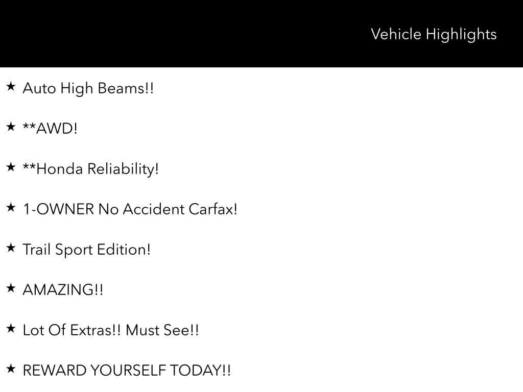 Wilde East Towne Honda is Your Destination Dealership in Madison!!, This Honda Passport has many features, including;, Back-Up Camera!, **Apple CarPlay!!, *Android Auto!!, USB/AUX Input!, *Bluetooth!, Heated Leather Seats!, Lane Departure Warning!!, Auto High Beams!!, **AWD!, **Honda Reliability!, 1-OWNER No Accident Carfax!, Trail Sport Edition!, AMAZING!!, Lot Of Extras!! Must See!!, REWARD YOURSELF TODAY!!, **CALL NOW 608.402.8200!!, WE WELCOME ALL TRADE-INS!!, **KBB Fair Trade sale, vehicle must be 2012 or newer and be in running condition., Besides many of the features just listed, this Honda Passport also may have many of the following;, HondaTrue Certified Certified, Apple CarPlay/Android Auto, Blind Spot Information (BSI) System warning, Drivers Seat Mounted Armrest, Emergency communication system: HondaLink Assist, Heated door mirrors, Power Liftgate, Power moonroof, Spoiler, 4-Wheel Disc Brakes, 4.334 Axle Ratio, 7 Speakers, A/V remote: CabinControl, ABS brakes, Air Conditioning, Alloy wheels, AM/FM radio: SiriusXM, Auto High-beam Headlights, Auto-dimming Rear-View mirror, Automatic temperature control, Brake assist, Bumpers: body-color, Compass, Delay-off headlights, Driver door bin, Driver vanity mirror, Dual front impact airbags, Dual front side impact airbags, Electronic Stability Control, Exterior Parking Camera Rear, Four wheel independent suspension, Front anti-roll bar, Front Bucket Seats, Front Center Armrest, Front dual zone A/C, Front fog lights, Front reading lights, Fully automatic headlights, Garage door transmitter: HomeLink, Heated Front Bucket Seats, Heated front seats, Illuminated entry, Lane departure: Lane Keeping Assist System (LKAS) active, Leather-Trimmed Seats, Low tire pressure warning, Navigation system: Honda Satellite-Linked Navigation System, Occupant sensing airbag, Outside temperature display, Overhead airbag, Overhead console, Panic alarm, Passenger door bin, Passenger seat mounted armrest, Passenger vanity mirror, Power door mirrors, Power driver seat, Power passenger seat, Power steering, Power windows, Radio data system, Radio: 215-Watt Audio System w/7 Speakers, Rear air conditioning, Rear anti-roll bar, Rear reading lights, Rear seat center armrest, Rear window defroster, Rear window wiper, Remote keyless entry, Roof rack: rails only, Security system, Speed control, Speed-sensing steering, Split folding rear seat, Steering wheel mounted audio controls, Tachometer, Telescoping steering wheel, Tilt steering wheel, Traction control, Trip computer, Turn signal indicator mirrors, Variably intermittent wipers, Wheels: 18 Machine-Finish Alloy, Apple CarPlay/Android Auto, Blind Spot Information (BSI) System warning, Drivers Seat Mounted Armrest, Emergency communication system: HondaLink Assist, Heated door mirrors, Power Liftgate, Power moonroof, Spoiler.
