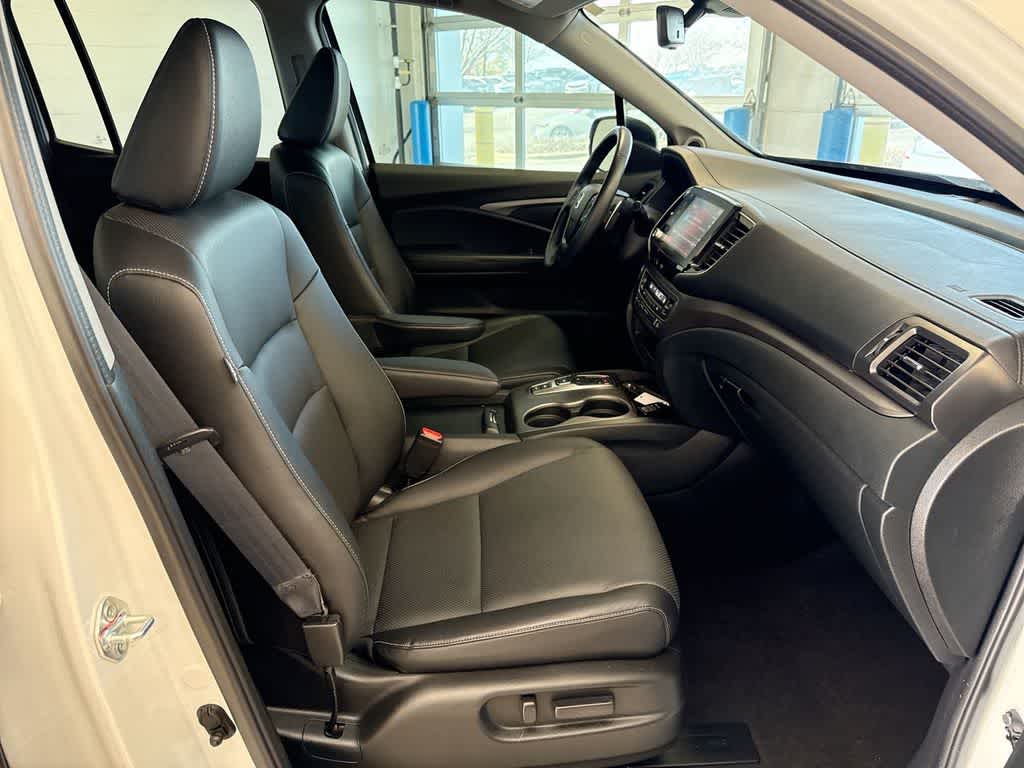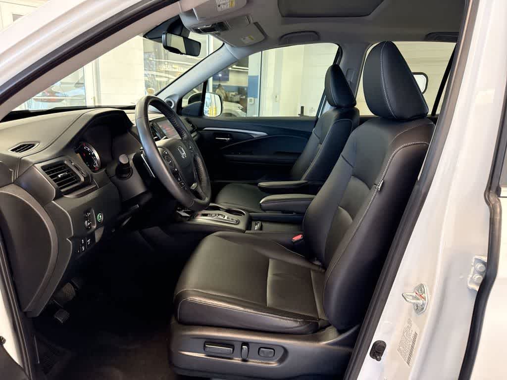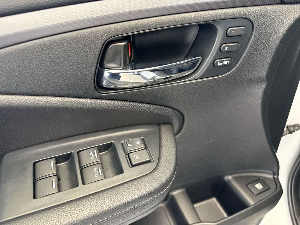 The Ridgelines rugged yet refined exterior is highlighted by the Platinum White Pearl color, which exudes a timeless elegance. The 18 Exclusive Pewter Gray Alloy wheels and body-color bumpers add to the vehicles striking appearance, while the power moonroof and heated door mirrors provide both style and convenience.