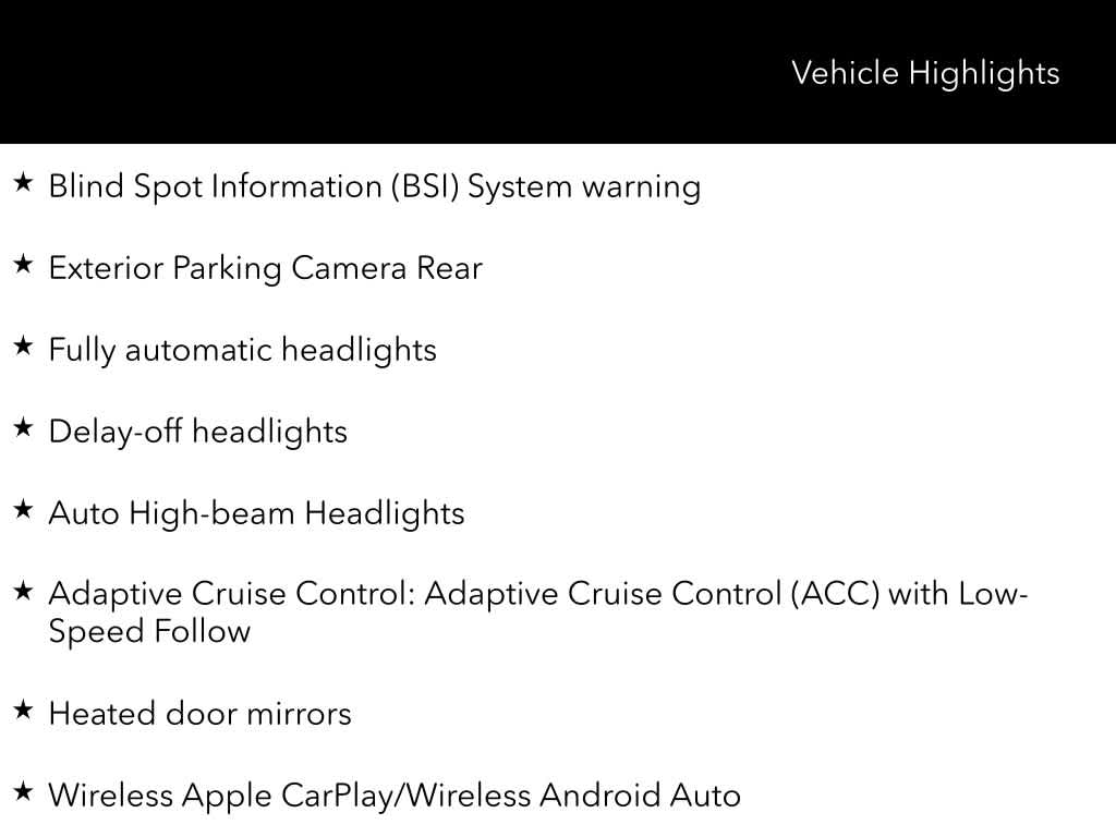 - Adaptive Cruise Control: Adaptive Cruise Control (ACC) with Low-Speed Follow