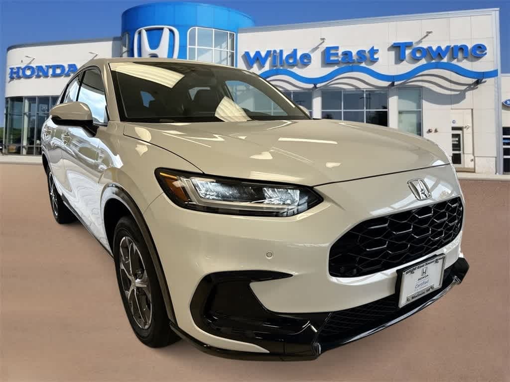 If no price vehicle is still going through our safety process, please inquire if interested., Wilde East Towne Honda is Your Destination Dealership in Madison!!, **Honda Presidents Award, Dealer Rater Dealership of the Year, CarFax Dealer of the Year and more!, This Honda HR-V has many features, including;, REWARD YOURSELF TODAY!!, **CALL NOW 608.402.8200!!, WE WELCOME ALL TRADE-INS!!, *See store for details on Lifetime oil plan. Must present at time of sale. Not all vehicles qualify, **$998 Wilde Care Including 3 oil changes on all new & pre owned vehicles., **KBB Fair Trade sale, vehicle must be 2010 or newer and be in running condition., Besides many of the features just listed, this Honda HR-V also may have many of the following;, HondaTrue Certified Certified, Adaptive Cruise Control: Adaptive Cruise Control (ACC) with Low-Speed Follow, Power moonroof, 17 Machine-Finished Alloy Wheels, 4-Wheel Disc Brakes, 5.436 Axle Ratio, 8 Speakers, ABS brakes, Air Conditioning, Alloy wheels, AM/FM radio: SiriusXM, Apple CarPlay/Android Auto, Auto High-beam Headlights, Auto-dimming Rear-View mirror, Automatic temperature control, Blind Spot Information (BSI) System warning, Brake assist, Bumpers: body-color, Compass, Delay-off headlights, Driver door bin, Driver vanity mirror, Dual front impact airbags, Dual front side impact airbags, Electronic Stability Control, Emergency communication system: HondaLink, Exterior Parking Camera Rear, Four wheel independent suspension, Front anti-roll bar, Front Bucket Seats, Front Center Armrest, Front dual zone A/C, Front reading lights, Fully automatic headlights, Heated door mirrors, Heated Front Bucket Seats, Heated front seats, Illuminated entry, Knee airbag, Leather Shift Knob, Leather steering wheel, Leather-Trimmed Seats, Low tire pressure warning, Occupant sensing airbag, Outside temperature display, Overhead airbag, Panic alarm, Passenger door bin, Passenger vanity mirror, Power door mirrors, Power driver seat, Power steering, Power windows, Radio data system, Radio: 180-Watt Audio System w/8 Speakers, Rear anti-roll bar, Rear reading lights, Rear side impact airbag, Rear window defroster, Rear window wiper, Remote keyless entry, Security system, Speed control, Speed-sensing steering, Split folding rear seat, Spoiler, Steering wheel mounted audio controls, Tachometer, Telescoping steering wheel, Tilt steering wheel, Traction control, Trip computer, Turn signal indicator mirrors, Variably intermittent wipers, Adaptive Cruise Control: Adaptive Cruise Control (ACC) with Low-Speed Follow, Power moonroof.