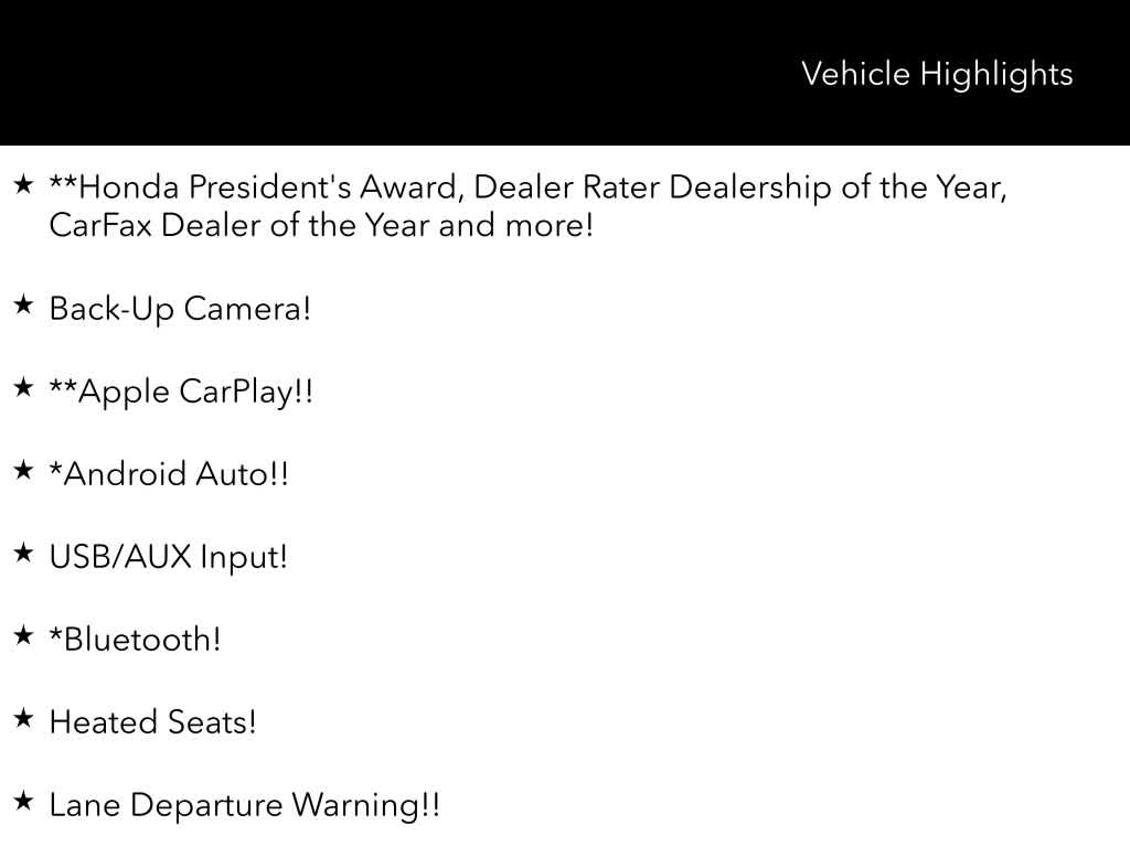 **Honda Presidents Award, Dealer Rater Dealership of the Year, CarFax Dealer of the Year and more!, This Honda Accord has many features, including;, Back-Up Camera!, **Apple CarPlay!!, *Android Auto!!, USB/AUX Input!, *Bluetooth!, Heated Seats!, Lane Departure Warning!!, Auto High Beams!!, Dynamic Radar Cruise Control!!, **Honda Reliability!, **LOCAL CAR!, **Clean Carfax!, **No Accidents!!, **Great Gas Mileage!, **Low Miles!!, **Newly Acquired!!, CHECK IT OUT TODAY!!, **CALL NOW 608.402.8200!!, WE WELCOME ALL TRADE-INS!!, **KBB Fair Trade sale, vehicle must be 2012 or newer and be in running condition., Besides many of the features just listed, this Honda Accord also may have many of the following;, HondaTrue Certified Certified, Black w/Fabric Seat Trim, Blind Spot Information (BSI) System warning, Power moonroof, Steering wheel mounted audio controls, 4-Wheel Disc Brakes, 8 Speakers, ABS brakes, Adaptive Cruise Control: Adaptive Cruise Control (ACC) with Low-Speed Follow, Air Conditioning, Alloy wheels, AM/FM radio, Apple CarPlay/Android Auto, Auto High-beam Headlights, Automatic temperature control, Brake assist, Bumpers: body-color, Compass, Delay-off headlights, Driver door bin, Driver vanity mirror, Dual front impact airbags, Dual front side impact airbags, Electronic Stability Control, Emergency communication system: HondaLink Assist, Exterior Parking Camera Rear, Fabric Seat Trim, Four wheel independent suspension, Front anti-roll bar, Front Bucket Seats, Front Center Armrest, Front dual zone A/C, Front reading lights, Fully automatic headlights, Heated door mirrors, Heated Front Bucket Seats, Heated front seats, Illuminated entry, Knee airbag, Lane departure: Lane Keeping Assist System (LKAS) active, Low tire pressure warning, Occupant sensing airbag, Outside temperature display, Overhead airbag, Overhead console, Panic alarm, Passenger door bin, Passenger vanity mirror, Power door mirrors, Power driver seat, Power steering, Power windows, Radio data system, Radio: 180-Watt Audio System, Rear anti-roll bar, Rear reading lights, Rear seat center armrest, Rear side impact airbag, Rear window defroster, Remote keyless entry, Security system, Speed control, Speed-sensing steering, Speed-Sensitive Wipers, Split folding rear seat, Tachometer, Telescoping steering wheel, Tilt steering wheel, Traction control, Trip computer, Variably intermittent wipers, Wheels: 17 x 7.5J Berlina Black, Black w/Fabric Seat Trim, Blind Spot Information (BSI) System warning, Power moonroof, Steering wheel mounted audio controls.