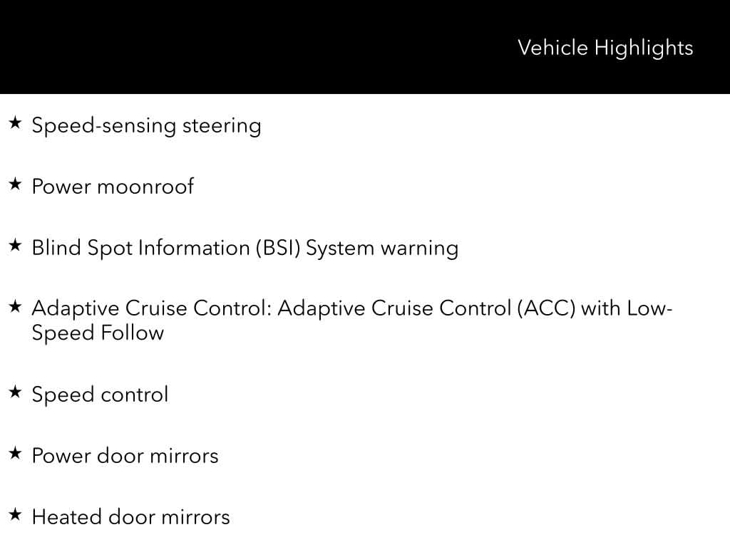 - Adaptive Cruise Control: Adaptive Cruise Control (ACC) with Low-Speed Follow