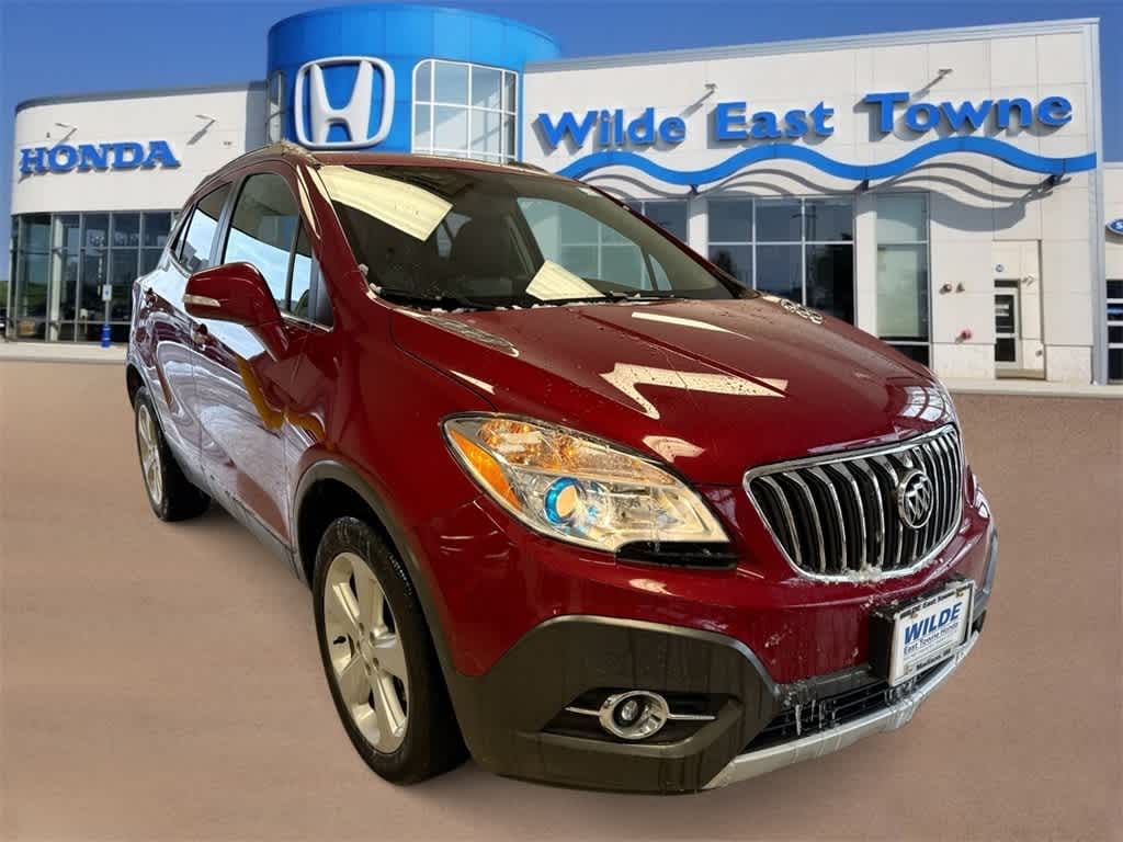 If no price vehicle is still going through our safety process, please inquire if interested., Wilde East Towne Honda is Your Destination Dealership in Madison!!, **Honda Presidents Award, Dealer Rater Dealership of the Year, CarFax Dealer of the Year and more!, This Buick Encore has many features, including;, REWARD YOURSELF TODAY!!, **CALL NOW 608.402.8200!!, WE WELCOME ALL TRADE-INS!!, *See store for details on Lifetime oil plan. Must present at time of sale. Not all vehicles qualify, **$998 Wilde Care Including 3 oil changes on all new & pre owned vehicles., **KBB Fair Trade sale, vehicle must be 2010 or newer and be in running condition., Besides many of the features just listed, this Buick Encore also may have many of the following;, 3.53 Final Drive Axle Ratio, 4-Wheel Disc Brakes, 6 Speakers, 6-Way Power Driver Seat Adjuster, 6-Way Power Front Passenger Seat Adjuster, ABS brakes, Air Conditioning, Alloy wheels, AM/FM radio: SiriusXM, Auto-dimming Rear-View mirror, Automatic temperature control, Brake assist, Bumpers: body-color, Cargo Net, CD player, Compass, Delay-off headlights, Driver door bin, Driver vanity mirror, Drivers Seat Mounted Armrest, Dual front impact airbags, Dual front side impact airbags, Electronic Stability Control, Emergency communication system: OnStar Guidance, Exterior Parking Camera Rear, Front anti-roll bar, Front Bucket Seats, Front dual zone A/C, Front fog lights, Front License Plate Bracket, Front reading lights, Front wheel independent suspension, Fully automatic headlights, Heated door mirrors, Heated Driver & Front Passenger Seats, Heated front seats, Heated steering wheel, Illuminated entry, Knee airbag, Leather steering wheel, Leather-Appointed Seat Trim, Low tire pressure warning, Memory seat, Occupant sensing airbag, Outside temperature display, Overhead airbag, Panic alarm, Passenger door bin, Passenger vanity mirror, Power door mirrors, Power driver seat, Power passenger seat, Power steering, Power windows, Preferred Equipment Group 1SL, Premium audio system: IntelliLink, Radio data system, Radio: AM/FM Audio System w/MP3 CD Player, Rear seat center armrest, Rear side impact airbag, Rear window defroster, Rear window wiper, Remote keyless entry, Ride & Handling Suspension, Roof rack: rails only, Security system, SiriusXM Satellite Radio, Speed control, Speed-sensing steering, Split folding rear seat, Spoiler, Steering wheel mounted audio controls, Tachometer, Telescoping steering wheel, Tilt steering wheel, Traction control, Trip computer, Turn signal indicator mirrors, Variably intermittent wipers, Wheel Lock Kit (LPO), Wheels: 18 5-Spoke Cast Aluminum.