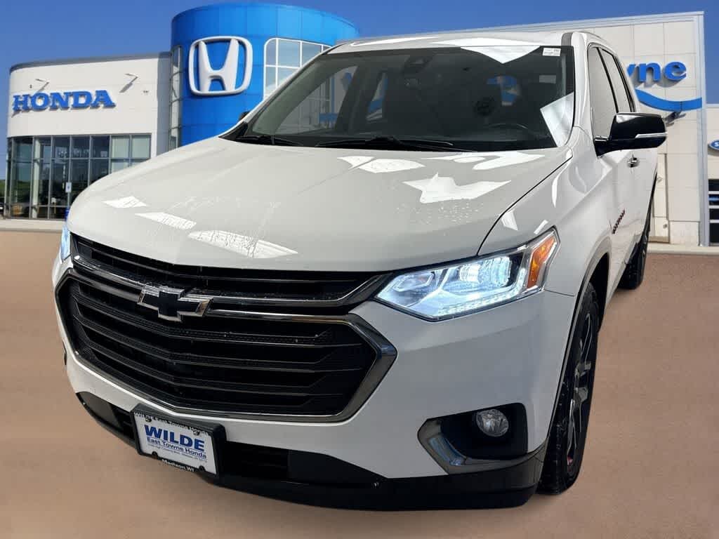 If no price vehicle is still going through our safety process, please inquire if interested., Wilde East Towne Honda is Your Destination Dealership in Madison!!, **Honda Presidents Award, Dealer Rater Dealership of the Year, CarFax Dealer of the Year and more!, This Chevrolet Traverse has many features, including;, REWARD YOURSELF TODAY!!, **CALL NOW 608.402.8200!!, WE WELCOME ALL TRADE-INS!!, *See store for details on Lifetime oil plan. Must present at time of sale. Not all vehicles qualify, **$998 Wilde Care Including 3 oil changes on all new & pre owned vehicles., **KBB Fair Trade sale, vehicle must be 2012 or newer and be in running condition., Besides many of the features just listed, this Chevrolet Traverse also may have many of the following;, AWD, Memory seat, Power Liftgate, 10 Speakers, 1st & 2nd Row All-Weather Floor Liner (LPO), 3.49 Axle Ratio, 3rd Row All-Weather Floor Liner (LPO), 3rd row seats: split-bench, 4-Wheel Disc Brakes, 7-Passenger Seating (2-2-3 Seating Configuration), ABS brakes, Air Conditioning, Alloy wheels, AM/FM radio: SiriusXM, Apple CarPlay/Android Auto, Auto High-beam Headlights, Auto-dimming door mirrors, Auto-dimming Rear-View mirror, Automatic temperature control, Black Door Handles, Bose Premium 10-Speaker Audio System Feature, Brake assist, Bumpers: body-color, Compass, Delay-off headlights, Driver door bin, Driver vanity mirror, Dual front impact airbags, Dual front side impact airbags, Dual SkyScape 2-Panel Power Sunroof, Electronic Stability Control, Emergency communication system, Floor Liner Package (LPO), Four wheel independent suspension, Front anti-roll bar, Front Bucket Seats, Front Center Armrest, Front dual zone A/C, Front fog lights, Front License Plate Bracket Mounting Package, Front reading lights, Fully automatic headlights, Garage door transmitter, Heated door mirrors, Heated front seats, Heated rear seats, Heated steering wheel, Heavy-Duty Cooling System, Illuminated entry, Integrated Cargo Liner (LPO), Low tire pressure warning, Navigation System, Occupant sensing airbag, Ornamentation, Outside temperature display, Overhead airbag, Overhead console, Panic alarm, Passenger door bin, Passenger vanity mirror, Perforated Leather-Appointed Seat Trim, Power door mirrors, Power driver seat, Power passenger seat, Power steering, Power windows, Preferred Equipment Group 1LZ, Premium audio system: Chevrolet MyLink, Radio data system, Radio: Chevrolet Infotainment AM/FM Stereo w/Navigation, Rear air conditioning, Rear anti-roll bar, Rear reading lights, Rear window defroster, Rear window wiper, Redline Edition, Remote keyless entry, Roof rack: rails only, Security system, SiriusXM Radio, Speed control, Speed-sensing steering, Spoiler, Steering wheel memory, Steering wheel mounted audio controls, Tachometer, Telescoping steering wheel, Tilt steering wheel, Traction control, Trailering Equipment, Trip computer, Turn signal indicator mirrors, Variably intermittent wipers, Ventilated front seats, Voltmeter, Wheels: 20 Argent Metallic Machine Faced Aluminum, Wheels: 20 Gloss Black Painted Alum w/Red Stripes, AWD, Memory seat, Power Liftgate.