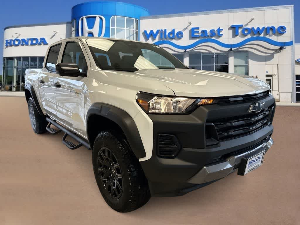 If no price vehicle is still going through our safety process, please inquire if interested., Wilde East Towne Honda is Your Destination Dealership in Madison!!, **Honda Presidents Award, Dealer Rater Dealership of the Year, CarFax Dealer of the Year and more!, This Chevrolet Colorado has many features, including;, Back-Up Camera!, USB/AUX Input!, *Bluetooth!, **4WD!, **LOCAL CAR!, **LOCAL TRADE-IN!, 1-OWNER No Accident Carfax!, **Low Miles!!, REWARD YOURSELF TODAY!!, **CALL NOW 608.402.8200!!, WE WELCOME ALL TRADE-INS!!, *See store for details on Lifetime oil plan. Must present at time of sale. Not all vehicles qualify, **$998 Wilde Care Including 3 oil changes on all new & pre owned vehicles., **KBB Fair Trade sale, vehicle must be 2012 or newer and be in running condition., Besides many of the features just listed, this Chevrolet Colorado also may have many of the following;, 4WD, 3.42 Rear Axle Ratio, 4-Spoke Wrapped Steering Wheel, 4-Way Manual Passenger Seat Adjuster, 4-Wheel Disc Brakes, 6 Speakers, 6-Speaker Audio System Feature, 6-Way Manual Driver Seat Adjuster, 8-Way Power Driver Seat Adjuster, ABS brakes, Adaptive Cruise Control, Air Conditioning, Alloy wheels, AM/FM radio: SiriusXM, Apple CarPlay/Android Auto, Auto High-beam Headlights, Automatic Emergency Braking, Automatic temperature control, Black Spray-On Bedliner w/Chevrolet Logo, Brake assist, Chevy Safety Assist, Cloth Seat Trim, Compass, Delay-off headlights, Driver door bin, Driver vanity mirror, Dual front impact airbags, Dual front side impact airbags, Electronic Stability Control, Emergency communication system: OnStar, Evotex Seat Trim, Following Distance Indicator, Forward Collision Alert, Front anti-roll bar, Front Bucket Seats, Front Center Armrest, Front dual zone A/C, Front License Plate Kit, Front Pedestrian & Bicyclist Braking, Front wheel independent suspension, HD Surround Vision, Heated door mirrors, Heated Driver & Front Passenger Seats, Heated Steering Wheel, Illuminated entry, IntelliBeam Automatic High Beam On/Off, Lane Keep Assist w/Lane Departure Warning, Low tire pressure warning, Navigation System, Occupant sensing airbag, Outside temperature display, Overhead airbag, Overhead console, Panic alarm, Passenger door bin, Passenger vanity mirror, Power door mirrors, Power Driver Lumbar Control Seat Adjuster, Power steering, Power windows, Preferred Equipment Group 0TR, Radio data system, Radio: 11.3 Diagonal Advanced Color LCD Display, Rear Pedestrian Alert, Rear reading lights, Rear step bumper, Rear window defroster, Remote keyless entry, Remote Vehicle Starter System, Security system, SiriusXM Trial Subscription, Speed control, Speed-sensing steering, Split folding rear seat, Steering Wheel Mounted Audio Controls, Steering wheel mounted audio controls, Tachometer, Technology Package, Tilt steering wheel, Traction control, Trail Boss Convenience Package II, Trip computer, Variably intermittent wipers, Wheels: 18 x 8.5 Black High Gloss Aluminum, Wireless Phone Charging, Wireless Phone Projection, 4WD.