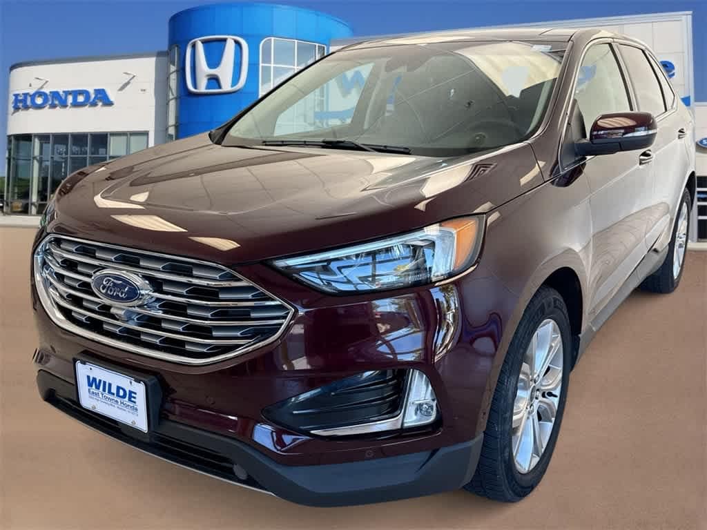 Wilde East Towne Honda is Your Destination Dealership in Madison!!, **Honda Presidents Award, Dealer Rater Dealership of the Year, CarFax Dealer of the Year and more!, This Ford Edge has many features, including;, Birds Eye View Camera!, Premium Audio Package!!, **Apple CarPlay!!, *Android Auto!!, USB/AUX Input!, *Bluetooth!, Navigation!, **Qi Wireless Charging!!, Panoramic Sun Roof!, Heated Steering Wheel!, Heated Leather Seats!, Air Conditioned/Ventilated Seats!, **Memory Drivers Seat!, **Dual Power Seats!!, Push Button Start!!, Remote Start!!, Blind Spot Monitoring!, Lane Departure Warning!!, Auto High Beams!!, Dynamic Radar Cruise Control!!, Pre-Collision System!!, **Power Liftgate!!, **AWD!, **LOCAL TRADE-IN!, **Clean Carfax!, **No Accidents!!, Titanium Trim!!, **Great Gas Mileage!, AMAZING!!, **Bought Here, Serviced Here!, **Low Miles!!, **Newly Acquired!!, Lot Of Extras!! Must See!!, **PROUDLY DISPLAYED AT WILDE EAST TOWNE HONDA!, SEE IT FIRST BEFORE ANYONE ELSE!!, REWARD YOURSELF TODAY!!, **CALL NOW 608.402.8200!!, WE WELCOME ALL TRADE-INS!!, *See store for details on Lifetime oil plan. Must present at time of sale. Not all vehicles qualify, **$998 Wilde Care Including 3 oil changes on all new & pre owned vehicles., **KBB Fair Trade sale, vehicle must be 2010 or newer and be in running condition., Besides many of the features just listed, this Ford Edge also may have many of the following;, AWD, 12 Speakers, 4-Wheel Disc Brakes, ABS brakes, Air Conditioning, Alloy wheels, AM/FM radio: SiriusXM, AppLink/Apple CarPlay and Android Auto, Auto High-beam Headlights, Auto tilt-away steering wheel, Auto-dimming Rear-View mirror, Automatic temperature control, Axle Ratio: TBA, Brake assist, Bumpers: body-color, CD player, Compass, Delay-off headlights, Driver door bin, Driver vanity mirror, Dual front impact airbags, Dual front side impact airbags, Electronic Stability Control, Emergency communication system: SYNC 3 911 Assist, Four wheel independent suspension, Front anti-roll bar, Front Bucket Seats, Front Center Armrest w/Storage, Front dual zone A/C, Front fog lights, Front reading lights, Fully automatic headlights, Garage door transmitter, Heated door mirrors, Heated front seats, Illuminated entry, Knee airbag, Leather-Trimmed Heated Sport Bucket Seats, Low tire pressure warning, Memory seat, Occupant sensing airbag, Outside temperature display, Overhead airbag, Overhead console, Panic alarm, Passenger door bin, Passenger vanity mirror, Power door mirrors, Power driver seat, Power Liftgate, Power passenger seat, Power steering, Power windows, Radio: B&O Sound System by Bang & Olufsen, Rain sensing wipers, Rear anti-roll bar, Rear Parking Sensors, Rear reading lights, Rear seat center armrest, Rear window defroster, Rear window wiper, Remote keyless entry, Roof rack: rails only, Security system, SiriusXM Radio, Speed control, Speed-Sensitive Wipers, Split folding rear seat, Spoiler, Steering wheel memory, Steering wheel mounted audio controls, SYNC 3 Communications & Entertainment System, Tachometer, Telescoping steering wheel, Tilt steering wheel, Traction control, Trip computer, Turn signal indicator mirrors, Variably intermittent wipers, Wheels: 19 Nickel-Painted Aluminum, AWD.