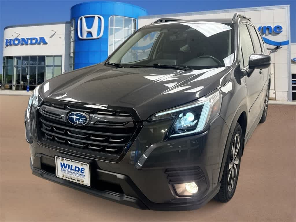 If no price vehicle is still going through our safety process, please inquire if interested., Wilde East Towne Honda is Your Destination Dealership in Madison!!, **Honda Presidents Award, Dealer Rater Dealership of the Year, CarFax Dealer of the Year and more!, This Subaru Forester has many features, including;, REWARD YOURSELF TODAY!!, **CALL NOW 608.402.8200!!, WE WELCOME ALL TRADE-INS!!, *See store for details on Lifetime oil plan. Must present at time of sale. Not all vehicles qualify, **$998 Wilde Care Including 3 oil changes on all new & pre owned vehicles., **KBB Fair Trade sale, vehicle must be 2010 or newer and be in running condition., Besides many of the features just listed, this Subaru Forester also may have many of the following;, 3.70 Axle Ratio, 4-Wheel Disc Brakes, 6 Speakers, ABS brakes, Air Conditioning, Alloy wheels, AM/FM radio: SiriusXM, Anti-whiplash front head restraints, Auto High-beam Headlights, Automatic temperature control, Brake assist, Bumpers: body-color, CD player, Driver door bin, Driver vanity mirror, Dual front impact airbags, Dual front side impact airbags, Electronic Stability Control, Emergency communication system: STARLINK Safety and Security (Subscription Required), Exterior Parking Camera Rear, Four wheel independent suspension, Front anti-roll bar, Front Bucket Seats, Front Center Armrest, Front dual zone A/C, Front fog lights, Front reading lights, Fully automatic headlights, harman/kardon 576W Amp & Speaker System, Heated door mirrors, Heated Front Bucket Seats, Heated front seats, Heated Steering Wheel, Illuminated entry, Knee airbag, Leather Shift Knob, Low tire pressure warning, Nav & harman/kardon & RAB & Heated Steering Wheel, Navigation System, Occupant sensing airbag, Outside temperature display, Overhead airbag, Overhead console, Panic alarm, Passenger door bin, Passenger vanity mirror, Perforated Leather-Trimmed Upholstery, Power door mirrors, Power driver seat, Power Liftgate, Power moonroof: Panoramic, Power steering, Power windows, Radio data system, Radio: Subaru Starlink 8.0 Multimedia Nav System, Radio: Subaru Starlink 8.0 Multimedia Plus System, Rear anti-roll bar, Rear seat center armrest, Rear window defroster, Rear window wiper, Remote keyless entry, Reverse Automatic Braking System (RAB), Roof rack: rails only, Security system, Speed control, Speed-sensing steering, Split folding rear seat, Spoiler, STARLINK/Apple CarPlay/Android Auto, Steering wheel mounted audio controls, Tachometer, Telescoping steering wheel, Tilt steering wheel, Traction control, Trip computer, Turn signal indicator mirrors, Variably intermittent wipers, Wheels: 18 x 7.0J Black Machine Finish Alum Alloy.