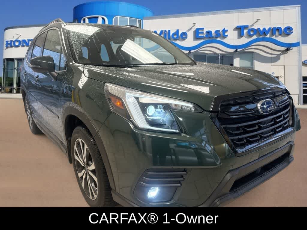 If no price vehicle is still going through our safety process, please inquire if interested., Wilde East Towne Honda is Your Destination Dealership in Madison!!, **Honda Presidents Award, Dealer Rater Dealership of the Year, CarFax Dealer of the Year and more!, This Subaru Forester has many features, including;, REWARD YOURSELF TODAY!!, **CALL NOW 608.402.8200!!, WE WELCOME ALL TRADE-INS!!, *See store for details on Lifetime oil plan. Must present at time of sale. Not all vehicles qualify, **$998 Wilde Care Including 3 oil changes on all new & pre owned vehicles., **KBB Fair Trade sale, vehicle must be 2012 or newer and be in running condition., Besides many of the features just listed, this Subaru Forester also may have many of the following;, harman/kardon 9-Speaker Audio System, Radio: Subaru STARLINK 8.0 Multimedia Nav System, Radio: Subaru STARLINK 8.0 Multimedia Plus System, 3.70 Axle Ratio, 4-Wheel Disc Brakes, 6 Speakers, ABS brakes, Air Conditioning, All-Weather Floor Liners, Alloy wheels, AM/FM radio: SiriusXM, Anti-whiplash front head restraints, Auto High-beam Headlights, Auto-Dimming Mirror w/Compass & HomeLink, Automatic temperature control, Body Side Molding - Cascade Green Metallic, Brake assist, Bumpers: body-color, Driver door bin, Driver vanity mirror, Dual front impact airbags, Dual front side impact airbags, Electronic Stability Control, Emergency communication system: STARLINK Safety and Security (Subscription Required), Exterior Parking Camera Rear, Four wheel independent suspension, Front anti-roll bar, Front Bucket Seats, Front Center Armrest, Front dual zone A/C, Front fog lights, Front reading lights, Fully automatic headlights, Heated door mirrors, Heated Front Bucket Seats, Heated front seats, Heated Steering Wheel, Illuminated entry, Knee airbag, Leather Shift Knob, Leather steering wheel, LED Upgrade, Low tire pressure warning, Nav & harman/kardon & RAB & Heated Steering Wheel, Navigation System, Occupant sensing airbag, Outside temperature display, Overhead airbag, Overhead console, Panic alarm, Passenger door bin, Passenger vanity mirror, Perforated Leather-Trimmed Upholstery, Power door mirrors, Power driver seat, Power Liftgate, Power moonroof: Panoramic, Power steering, Power windows, Radio data system, Rear anti-roll bar, Rear seat center armrest, Rear window defroster, Rear window wiper, Remote keyless entry, Reverse Automatic Braking System (RAB), Roof rack: rails only, Security system, Speed control, Speed-sensing steering, Splash Guards, Split folding rear seat, Spoiler, STARLINK/Apple CarPlay/Android Auto, Steering wheel mounted audio controls, Tachometer, Telescoping steering wheel, Tilt steering wheel, Traction control, Trip computer, Turn signal indicator mirrors, Variably intermittent wipers, Wheels: 18 x 7.0 J Black Machine Finish Alloy, harman/kardon 9-Speaker Audio System, Radio: Subaru STARLINK 8.0 Multimedia Nav System, Radio: Subaru STARLINK 8.0 Multimedia Plus System.