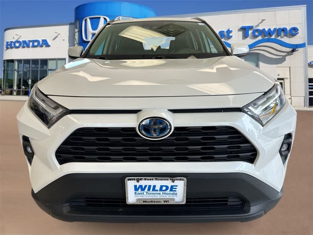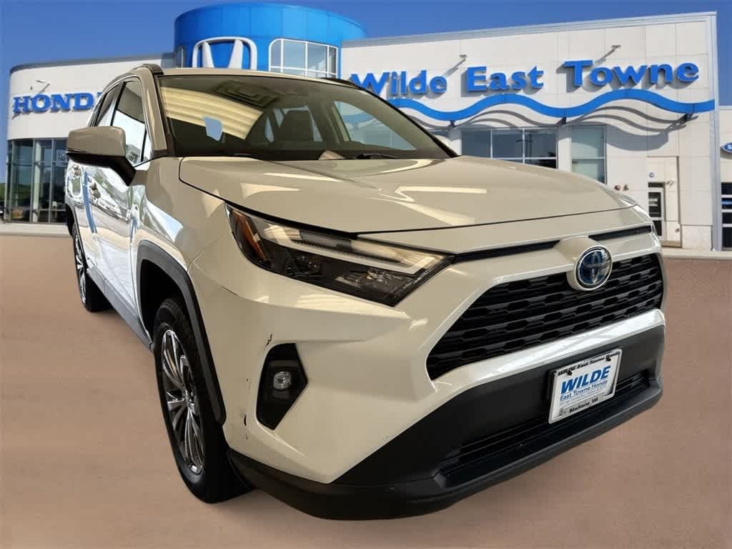 Wilde East Towne Honda is Your Destination Dealership in Madison!!, **Honda Presidents Award, Dealer Rater Dealership of the Year, CarFax Dealer of the Year and more!, This Toyota RAV4 Hybrid has many features, including;, Back-Up Camera!, **Apple CarPlay!!, *Android Auto!!, USB/AUX Input!, *Bluetooth!, **Qi Wireless Charging!!, Sunroof/Moonroof!, Heated Leather Seats!, Rear-Seat Blu-ray DVD Entertainment!, **Dual Power Seats!!, Push Button Start!!, Blind Spot Monitoring!, Lane Departure Warning!!, Auto High Beams!!, Dynamic Radar Cruise Control!!, Pre-Collision System!!, **Power Liftgate!!, **AWD!, **Toyota Reliability!!, **Clean Carfax!, **Great Gas Mileage!, AMAZING!!, **Low Miles!!, **Newly Acquired!!, CHECK IT OUT TODAY!!, Lot Of Extras!! Must See!!, **PROUDLY DISPLAYED AT WILDE EAST TOWNE HONDA!, REWARD YOURSELF TODAY!!, **CALL NOW 608.402.8200!!, WE WELCOME ALL TRADE-INS!!, **$998 Wilde Care Including 3 oil changes on all new & pre owned vehicles., Besides many of the features just listed, this Toyota RAV4 Hybrid also may have many of the following;, 2.5L 4-Cylinder, 3 Spoke Leather Steering Wheel, 4-Wheel Disc Brakes, 6 Speakers, ABS brakes, Air Conditioning, Alloy wheels, AM/FM radio: SiriusXM, AM/FM Stereo, Apple CarPlay/Android Auto, Auto High-beam Headlights, Automatic temperature control, Axle Ratio: TBD, Brake assist, Bumpers: body-color, Delay-off headlights, Driver door bin, Driver vanity mirror, Dual front impact airbags, Dual front side impact airbags, Electronic Stability Control, Emergency communication system: Safety Connect with 1-year trial, Exterior Parking Camera Rear, Four wheel independent suspension, Front anti-roll bar, Front Bucket Seats, Front Center Armrest, Front Door Smart Key System w/Push Button Start, Front dual zone A/C, Front Fog & Driving Lamp, Front fog lights, Front reading lights, Front Sport Seats, Fully automatic headlights, Heated door mirrors, Illuminated entry, Knee airbag, Lane Departure Warning System, Leather Shift Knob, Low tire pressure warning, Occupant sensing airbag, Outside temperature display, Overhead airbag, Overhead console, Panic alarm, Passenger door bin, Passenger vanity mirror, Power door mirrors, Power driver seat, Power Liftgate, Power moonroof, Power steering, Power windows, Radio data system, Rear anti-roll bar, Rear seat center armrest, Rear window defroster, Rear window wiper, Remote keyless entry, Roof rack: rails only, SofTex Seat Trim, Speed control, Speed-sensing steering, Split folding rear seat, Spoiler, Steering wheel mounted audio controls, Telescoping steering wheel, Tilt steering wheel, Traction control, Trip computer, Turn signal indicator mirrors, Variably intermittent wipers, Wheels: 18 x 7.0J 5-Spoke Sport Alloy, 2.5L 4-Cylinder.