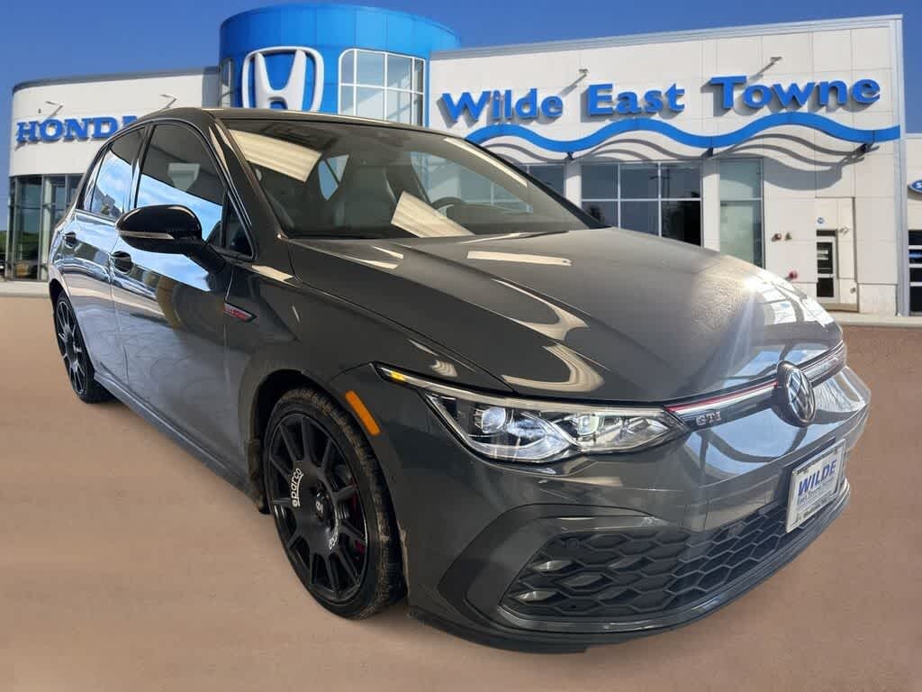 Wilde East Towne Honda is Your Destination Dealership in Madison!!, REWARD YOURSELF TODAY!!, **CALL NOW 608.402.8200!!, WE WELCOME ALL TRADE-INS!!, **KBB Fair Trade sale, vehicle must be 2012 or newer and be in running condition., Besides many of the features just listed, this Volkswagen Golf GTI also may have many of the following;, 9 Speakers, AM/FM radio: SiriusXM with 360L, harman/kardon® Speakers, Radio data system, Radio: MIB3 Discover Pro w/10 Touchscreen Navi, 4-Wheel Disc Brakes, ABS brakes, Active Blind Spot Monitor, Adaptive suspension, Air Conditioning, Alloy wheels, Auto High-beam Headlights, Auto-dimming Rear-View mirror, Auto-Dimming Rearview Mirror w/HomeLink Connect, Automatic temperature control, Brake assist, Bumpers: body-color, Compass, Delay-off headlights, Driver door bin, Driver vanity mirror, Dual front impact airbags, Dual front side impact airbags, Electronic Stability Control, Emergency communication system: VW Car-Net Safe & Secure 5-year, Exterior Parking Camera Rear, Forward collision: FCW w/Autonomous Emergency Braking mitigation, Four wheel independent suspension, Front anti-roll bar, Front Bucket Seats, Front Center Armrest, Front dual zone A/C, Front fog lights, Front reading lights, Fully automatic headlights, Heads-Up Display, Heated & Actively Ventilated Front Top Sport Seats, Heated door mirrors, Heated front seats, Heated rear seats, Heated steering wheel, Illuminated entry, Leather Shift Knob, Leather steering wheel, Low tire pressure warning, Memory seat, Navigation System, Occupant sensing airbag, Outside temperature display, Overhead airbag, Overhead console, Panic alarm, Passenger door bin, Passenger vanity mirror, Perforated Vienna Leather Seating Surfaces, Power door mirrors, Power driver seat, Power moonroof: Panoramic, Power passenger seat, Power steering, Power windows, Rain sensing wipers, Rear air conditioning, Rear anti-roll bar, Rear reading lights, Rear seat center armrest, Rear window defroster, Rear window wiper, Remote keyless entry, Rubber Mats Kit, Security system, Speed control, Speed-sensing steering, Speed-Sensitive Wipers, Split folding rear seat, Spoiler, Sport steering wheel, Steering wheel mounted audio controls, Tachometer, Telescoping steering wheel, Tilt steering wheel, Traction control, Trip computer, Turn signal indicator mirrors, Variably intermittent wipers, Ventilated front seats, Wheels: 19 Multi-Spoke Gloss Black Painted Alloy, 9 Speakers, AM/FM radio: SiriusXM with 360L, harman/kardon® Speakers, Radio data system, Radio: MIB3 Discover Pro w/10 Touchscreen Navi.
